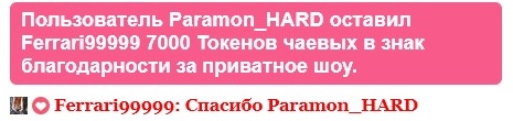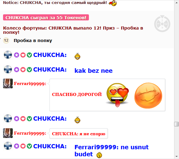 Klõpsates nupul, tõstad Ferrari99999 esilehel 60 sekundiks esimesele kohale. Selle aja jooksul paistab modelli jututuba hästi silma ja kogub populaarsust! Teavitus sinu tegevuse kohta ilmub ka jutuaknas ning seda näevad modell ja teisedki vestluses osalejad. Ferrari99999 hindab seda väga ja on sulle kindlasti tohutult tänulik!