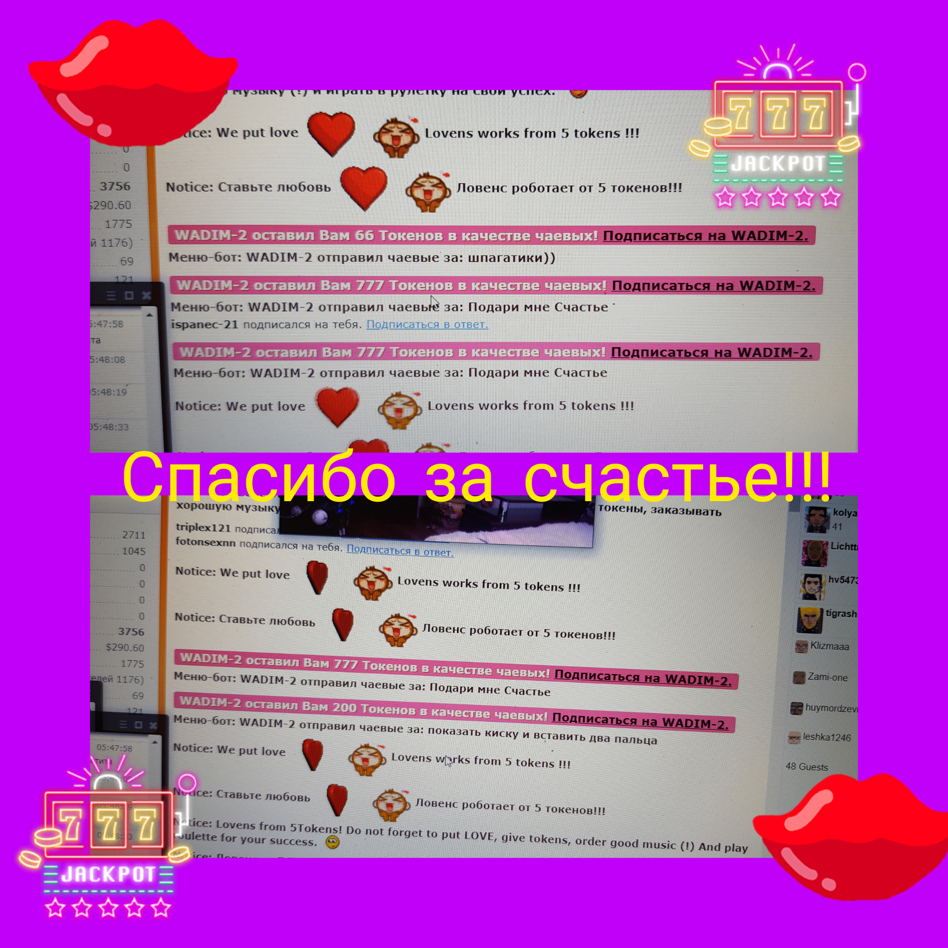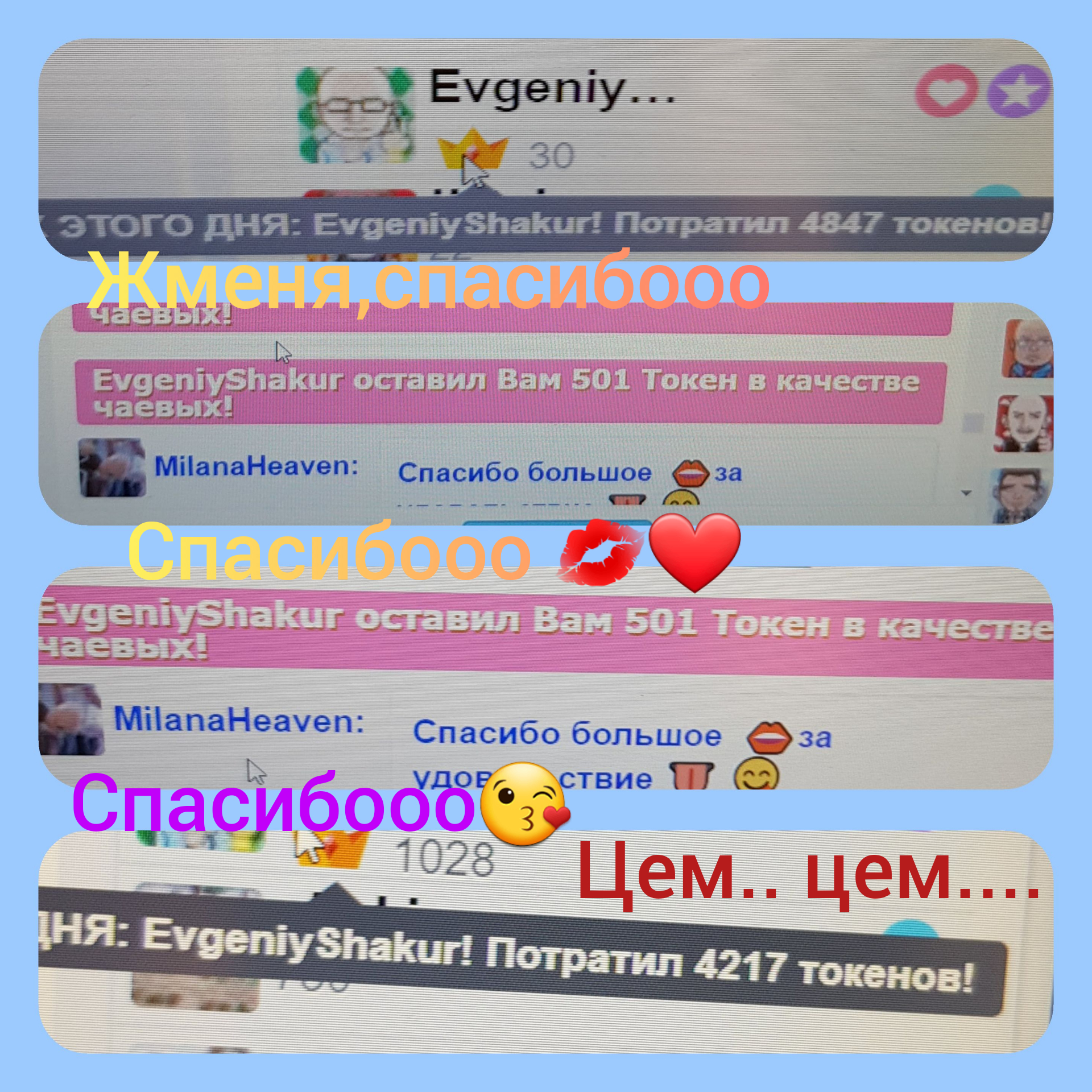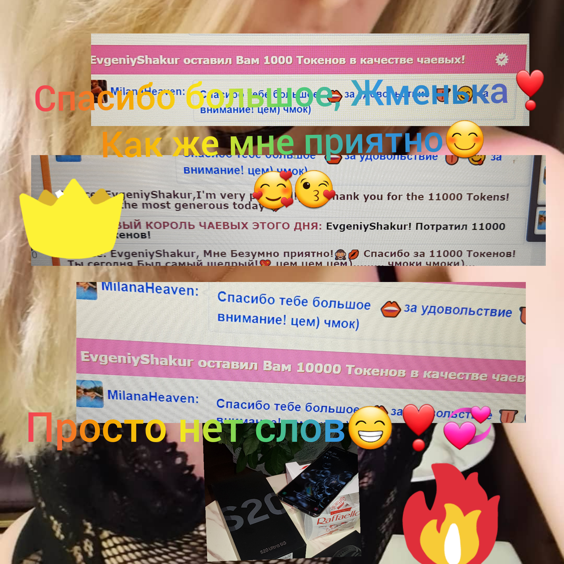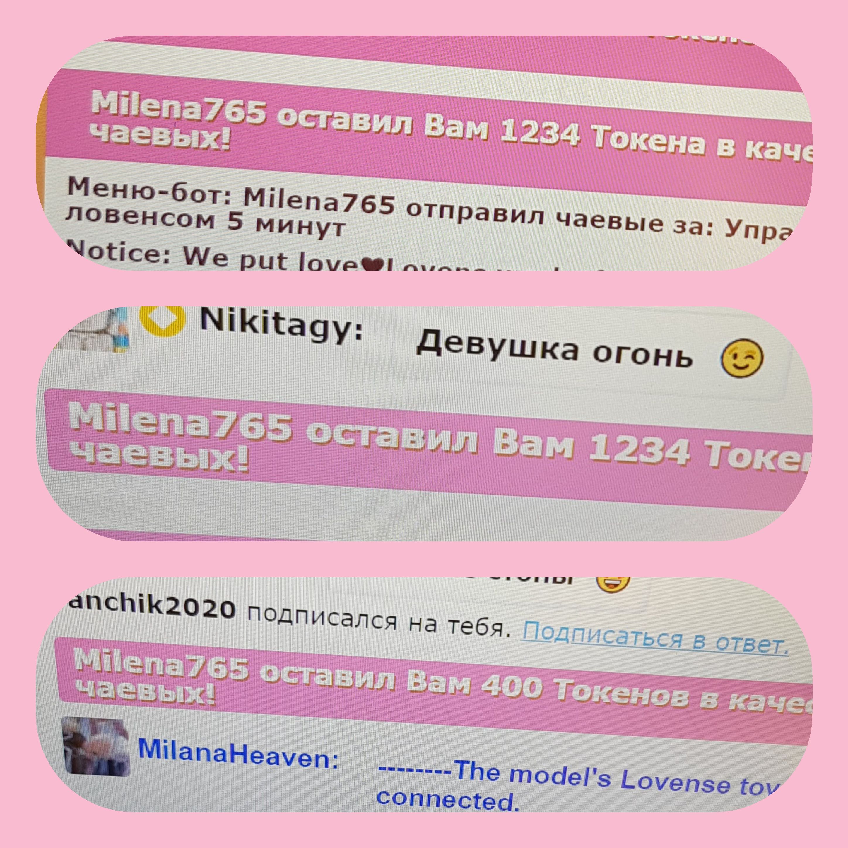 Klõpsates nupul, tõstad MILANA__ esilehel 60 sekundiks esimesele kohale. Selle aja jooksul paistab modelli jututuba hästi silma ja kogub populaarsust! Teavitus sinu tegevuse kohta ilmub ka jutuaknas ning seda näevad modell ja teisedki vestluses osalejad. MILANA__ hindab seda väga ja on sulle kindlasti tohutult tänulik!